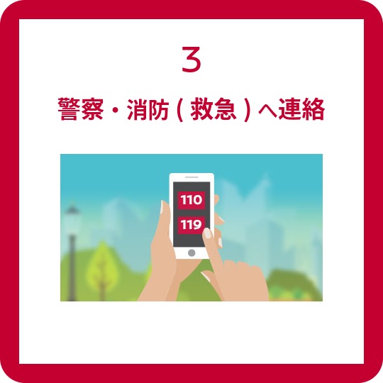 日ごろの備えと落ち着いた対処が必要です。誰もが「絶対に起こらない」とは言えないのが事故。