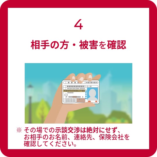 事故発生場所・時間・お相手のお名前・連絡先・保険会社を確認の上、